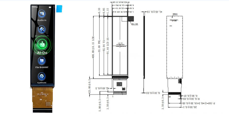 ET037BA01-Z (240×960 , TTL, IPS, 350nits, -20~70°C, 25.3×98.89mm)