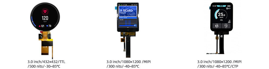 3 Inch Wide Temperature LCD Display 432×432 TTL -30°C to 85°C High Brightness 500nits TFT LCD Display.