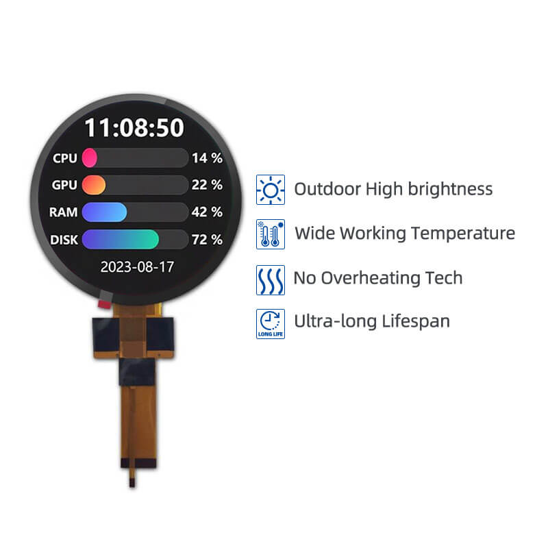 4.2 Inch High Brightness Display 850nits 720x720 Wide Temperature TTL IPS TFT LCD Display With Capacitive Touch.
