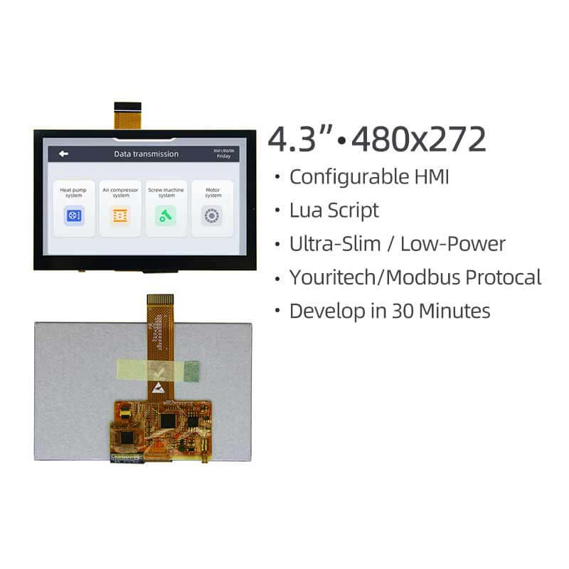 4.3 Inch 480x272 Serial TFT Display Ultra-thin TTL Configuration LUA Smart Display With Resistive Touch/ Capacitive Touch For Medical.