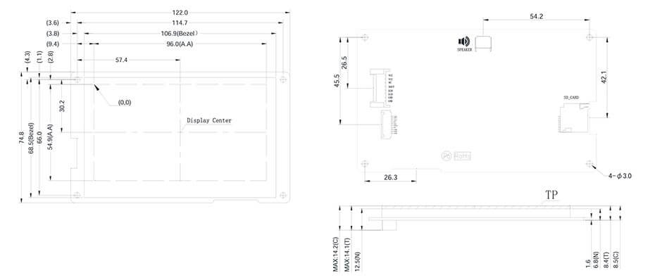 Product size: 122x74.8x14.2mm (MAX, including TP)
