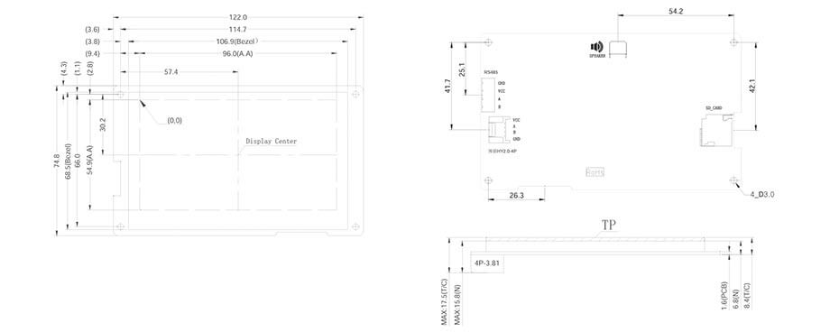 Product size: 122x74.8x17.5mm (MAX, including TP)