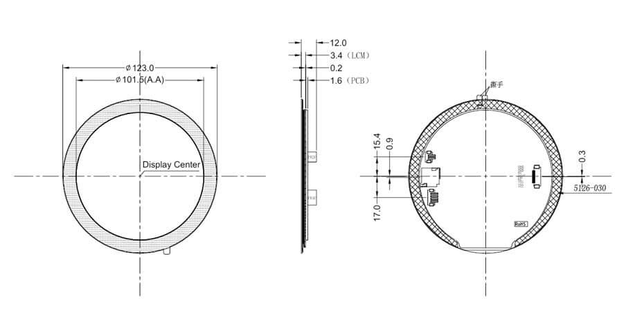 4 Inch Circular UI Serial Screen 720x720 Configuration LUA Script Serial TFT Display With Capacitive Touch For Medical.