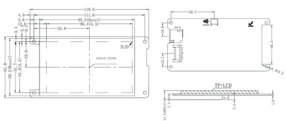 Product size: 119.5mmx61.8mmx11.4mm (MAX, including TP)