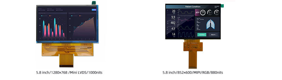 5.8 Inch High Brightness Display 880nits 852x600 MIPI/RGB Wide Temperature TFT LCD Display.