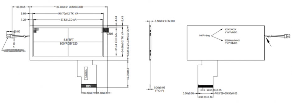 5.8 Inch Stretched Bar Display 800x320 IPS TTL 500nits High Brightness Wide Temperature TFT LCD Display.
