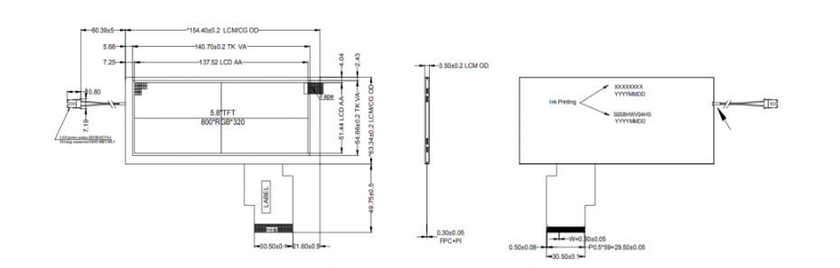 5.8 Inch Wide Temperature LCD Display 800×320 TTL -30°C to 85°C 500nits High Brightness TFT LCD Display.