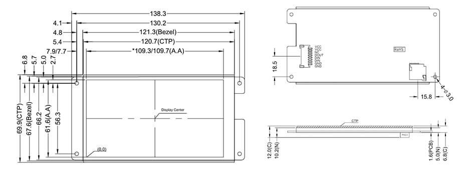Capacitive screen: 109.3mmx61.6mm, non-touch: 109.7mmx61.6mm