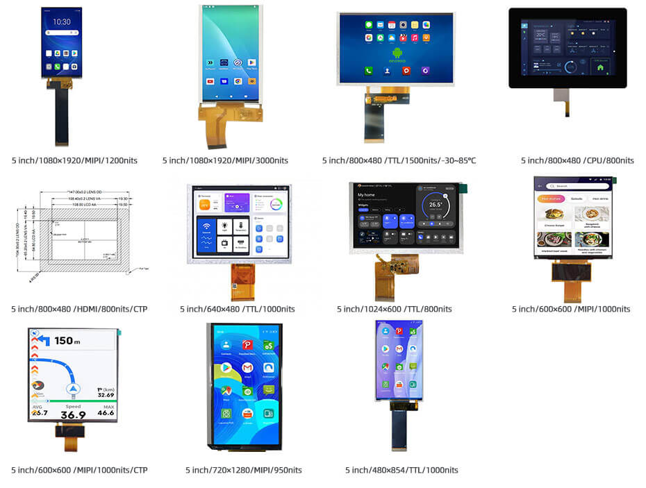 5 Inch High Brightness Display 800nits 1024x600 TTL IPS TFT LCD Display.