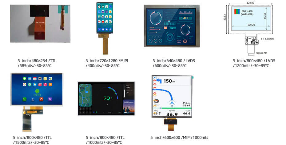 A0500WVF2MAAA (800×480, TTL, IPS, 1000nits, -30~85°C, 121.3×78.8mm)