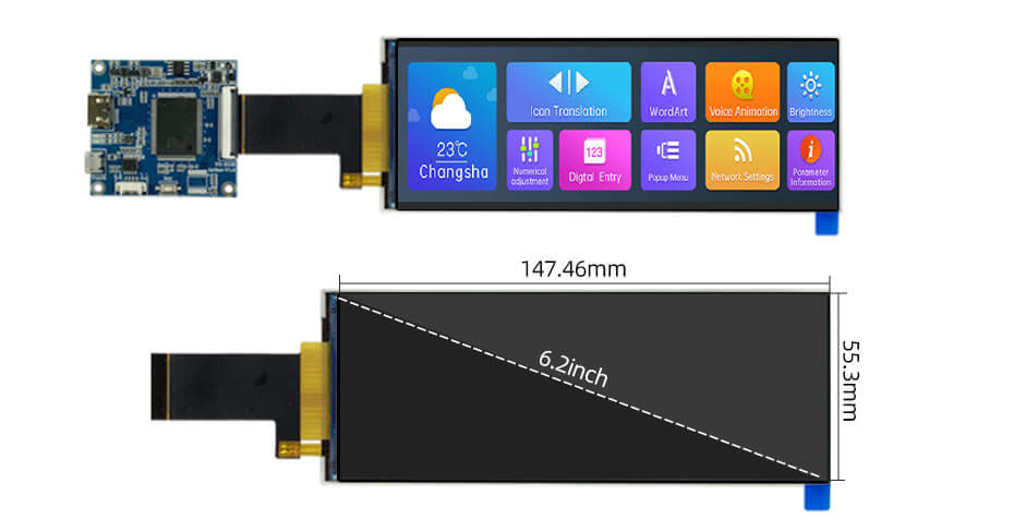 6.2 Inch Bar LCD Display 360x960 Full Viewing Angle IPS SPI RGB HD Display With Driver Board For Industrial Medical.