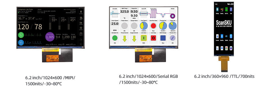 6.2 Inch High Brightness Display 700nits IPS 360x960 TTL TFT LCD Display.