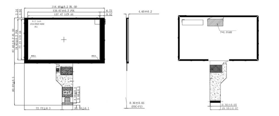 ET062WS01-F (LCD, 1024×600, MIPI, IPS, 1500nits, -30~80°C, 144.33×88.16mm)