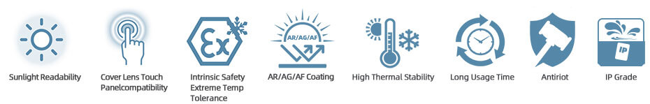 -Ruggedized for gloved operation, Multiple touch technologies (resistive, capacitive, optical)