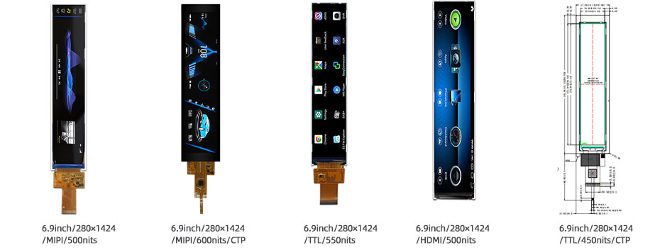 6.9 Inch Stretched Bar Display 280x1424 IPS TTL TFT LCD Display.