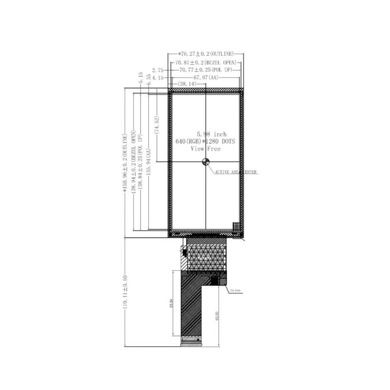 ET060WX01-GL (LCD, 640×1280, LVDS, IPS, 1000nits, -30~85°C, 76.47×151.16mm)