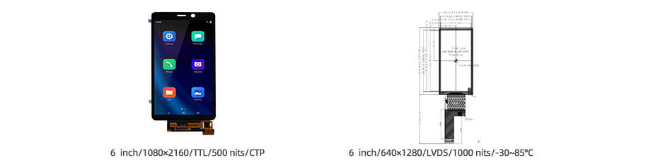 6 Inch Wide Temperature LCD Display 640×1280 LVDS -30°C to 85°C High Brightness 1000nit TFT LCD Display.