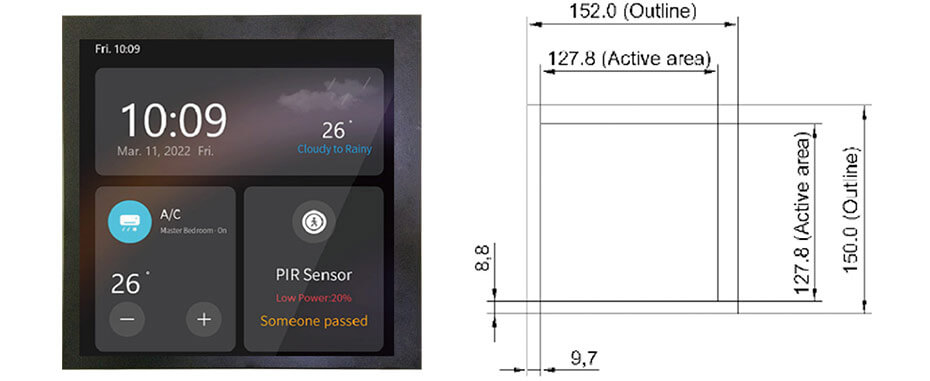 7.1 Inch Square Display 600x600 TTL 500nits High Brightness TFT LCD Display.