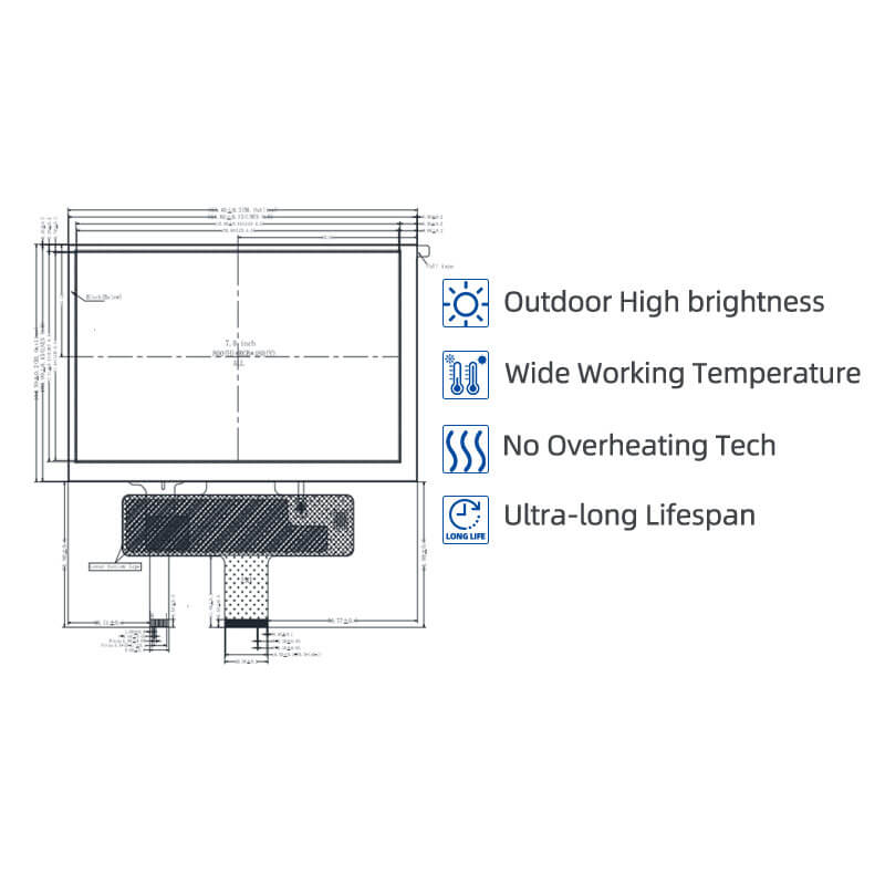 7 Inch High Brightness Display 1140nits IPS 800x480 Wide Temperature TTL TFT LCD Display.