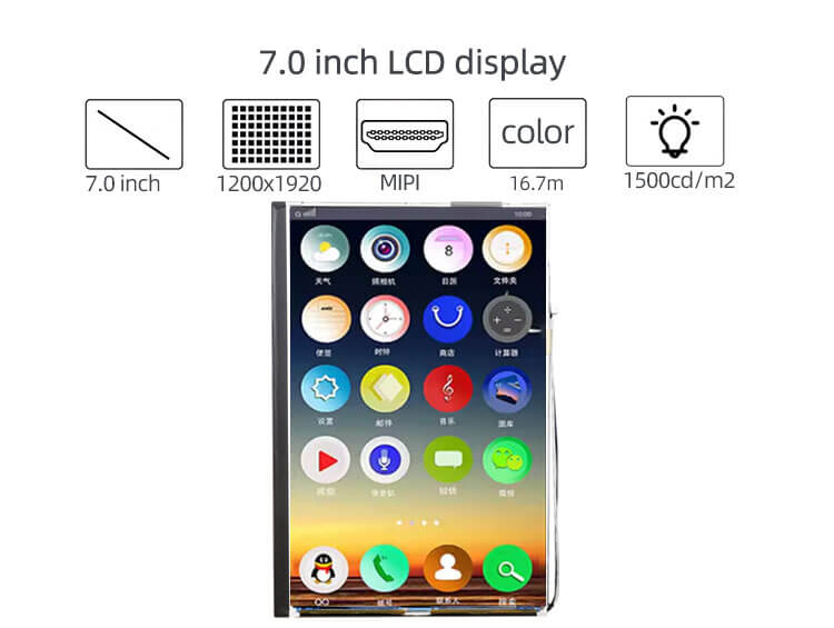 7 Inch High Brightness Display 1500nits IPS 1200x1920 MIPI TFT LCD Display.