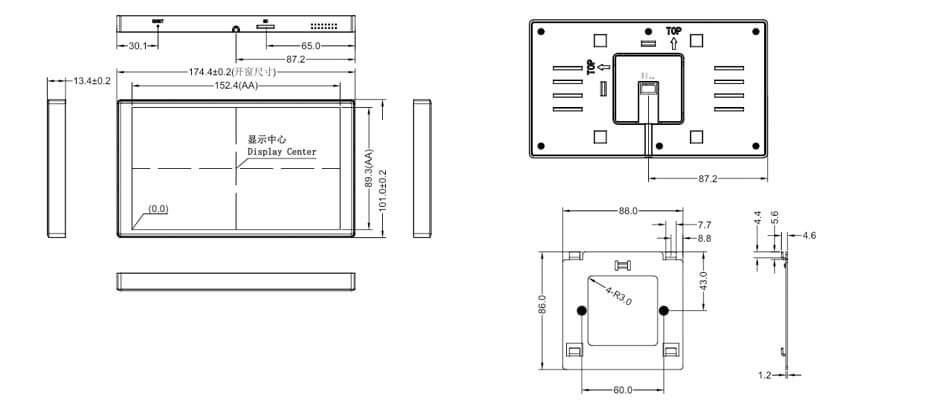 Product window size: 174.4 mmx101.0mm (recommended customer cabinet window size is 175.4 mmx102.0mm).