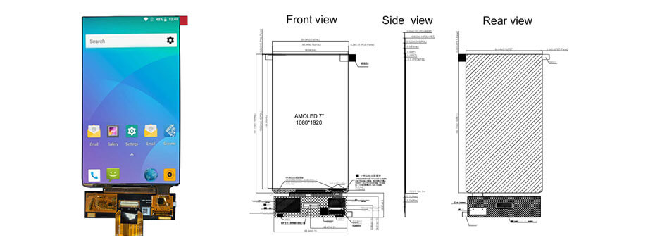 7 Inch Wide Temperature OLCD Display 1080×1920 MIPI -30°C to 85°C High Brightness 600nits AMOLED Display With On-Cell Touch.