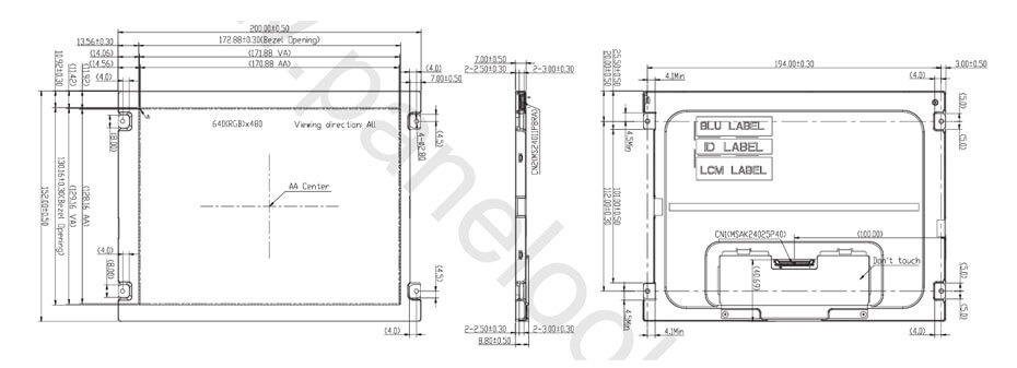 P0840VGF1MA00 (640×480, TTL, 900nits, -30~80°C, 200×152.88mm)