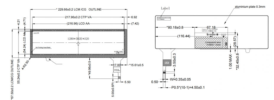 ET088BA01-KDT (1280x320, LVDS ,1000nits, -20~70°C, 229.66x67.5mm, CTP)