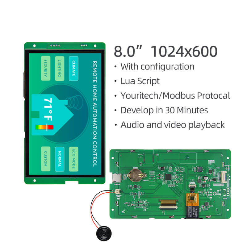8 Inch Serial Port Screen 1024x600 8P interface IPS Serial TFT Display With Capacitive Touch/Resistive Touch For Medical.