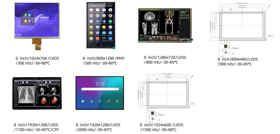 8 Inch Wide Temperature LCD Display 800×1280 MIPI -30°C to 80°C High Brightness 500nits TFT LCD Display.