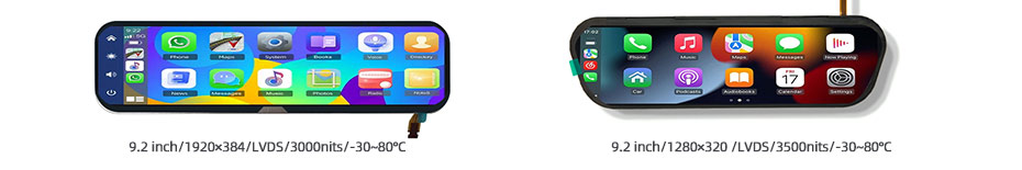 9.2 Inch High Brightness Display 3000nits IPS 1920x384 LVDS Wide Temperature TFT LCD Display.