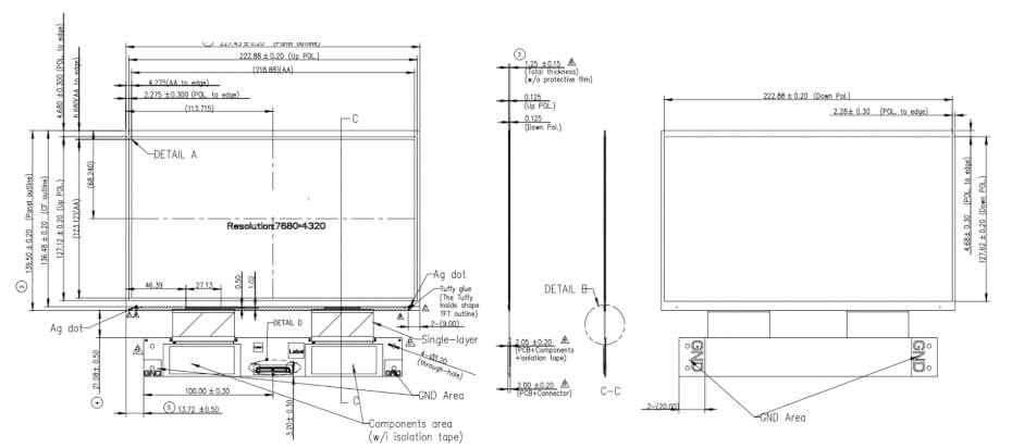 9.9 Inch 7680x4320 Monochrome LCD Display eDP IPS LCD Module For 3D Printer.