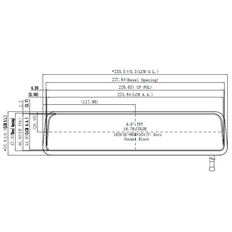 9 Inch TFT LCD Display 1920×384 LVDS High Brightness 3000nits Wide Temperature LCD Display For Automotive.