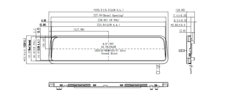 ET090BA01-GA (1920×384, LVDS, IPS, 3000nits, -30~85°C, 235.8×55.8mm)