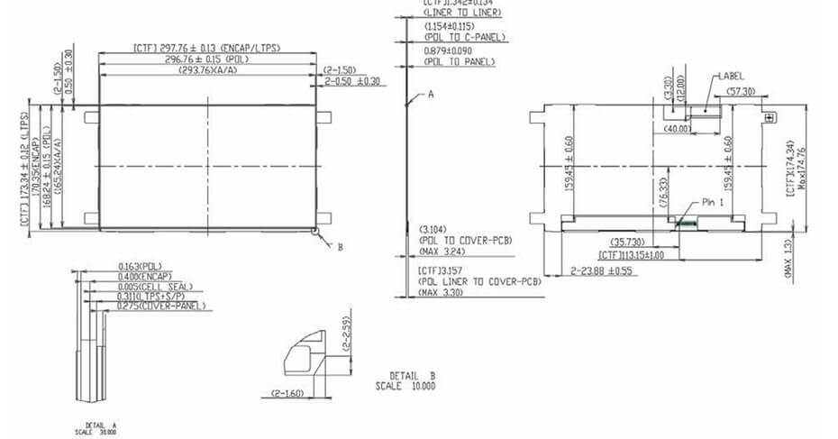 13.3 Inch LCD Display Drawing