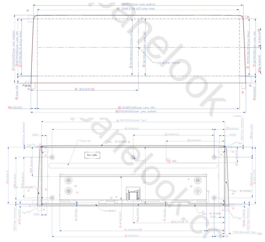 C145HAX01.1 supports display 2560(RGB)×720 with aspect ratio of >3:1 (W:H), whose pixels are arranged in RGB Vertical Stripe. It features active area of 354.816(W)×99.792(H) mm, outline size of 362.42(W)×112.41(H)×28.35(D) mm, with surface treament of Anti Fingerprint + Antiglare, Hard coating (3H), Antireflection, net weight of 650±65g. As a AHVA, Normally Black, Transmissive LCM product, C145HAX01.1 can provides 900 cd/m² display brightness 1500:1 transimissive contrast ratio, 89/89/89/89 (Typ.)(CR≥10) (L/R/U/D) viewing angle, best view direction on Symmetry , and response time of 20 (Typ.)(Tr+Td) ms. Gray scale or the brightness of the sub-pixel is determined with a 8-bit gray scale signal for each dot, thus presenting a palette of 16.7M colors, also with performance of color gamut 100% (sRGB). This product adopted WLED as it's backlight systerm which was placed as Edge light type and have a working life time of 20K hours, With LED Driver. It's typical vertical frame rate (Fv) is 60Hz.