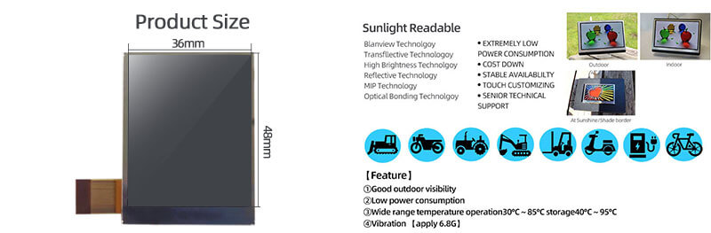 COM24H2P28XLC is a 2.4 inch diagonal a-Si TFT-LCD display screen product, with an incorporated WLED lighting system, without backlight driver, without touch screen.COM24H2P28XLC supports display 240(RGB)×320 (QVGA) with aspect ratio of 3:4 (W:H), whose pixels are arranged in RGB Vertical Stripe.It features active area of 36(W)×48(H) mm, outline size of 42.5(W)×58.5(H)×5.55(D) mm, with surface treament of Hard coating (3H), net weight of 13.6g (Typ.). As a TN, Normally White, Transflective LCM product, COM24H2P28XLC can provides 300 cd/m² display brightness 400:1 transimissive contrast ratio, 8.5:1 (Typ.) reflective contrast ratio, 80/80/80/80 (Min.)(CR≥10) (L/R/U/D) viewing angle , and response time of 40/60 (Max.)(Tr/Td) ms.