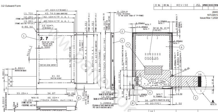 COM27H2P92UTC is a 2.7 inch diagonal a-Si TFT-LCD display screen product from Ortustech, with a built-in WLED backlight, without backlight driver, touchscreen 4-wire Resistive Touch.COM27H2P92UTC supports display 240(RGB)×320 (QVGA) with aspect ratio of 3:4 (W:H), whose pixels are arranged in RGB Vertical Stripe. As for mechanical detail, it features active area of 41.04(W)×54.72(H) mm, outline size of 47(W)×66(H)×5.64(D) mm, viewing area size of 43.74(W)×57.42(H) mm, net weight of 25.0g (Typ.). As a VA, Normally Black, Transflective LCM product, COM27H2P92UTC can provides 280 cd/m² display brightness 800:1 transimissive contrast ratio, 2:1 (Typ.) reflective contrast ratio, 80/80/80/80 (Min.)(CR≥10) (L/R/U/D) viewing angle, best view direction on Symmetry , and response time of 100 (Max.)(Tr+Td) ms.