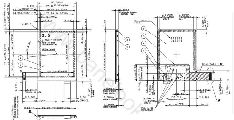 ET035TR01-VT (320x480, MCU/SPI, 150+12%nits, -20~70°C, 52.26x80.6mm, CTP(Optical))