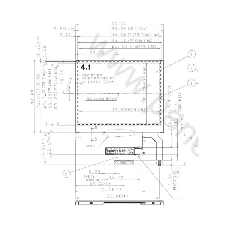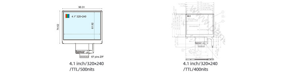 COM41H4P21ULC (320x240, TTL, 500nits, -20~70°C, 90.31x74.62mm)