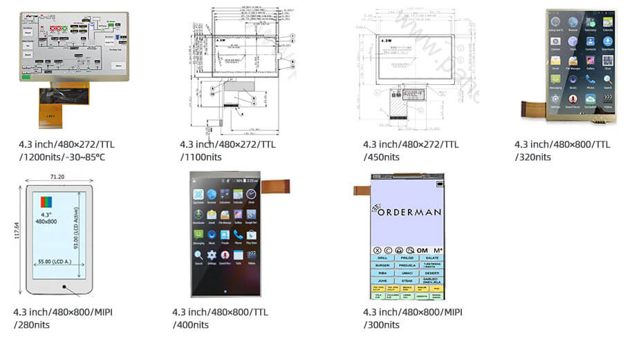 COM43H4N91UTC (480x800, TTL, 320nits, -20~70°C, 63x105.3mm, 4w-RTP)
