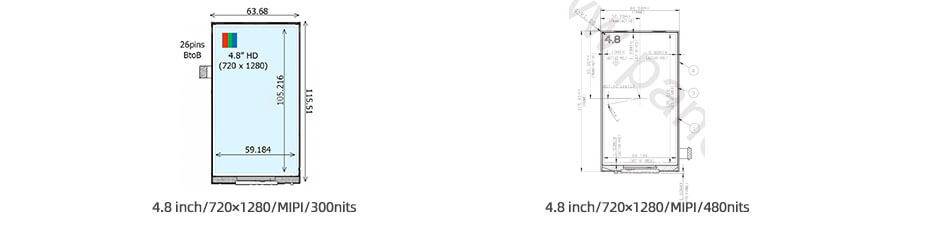 COM48H4P03ULC (720x1280, MIPI, 300nits, -20~70°C, 63.68x115.51mm)