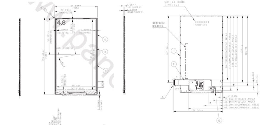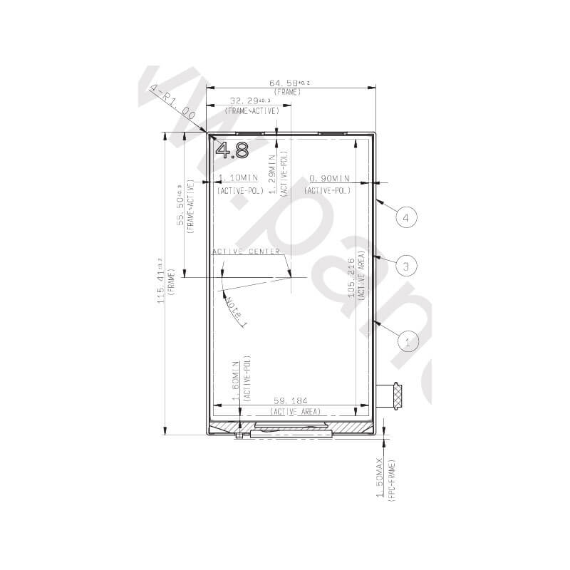 COM48H4P07ULC supports display 720(RGB)×1280 (WXGA) with aspect ratio of 9:16 (W:H), whose pixels are arranged in RGB Vertical Stripe,it's pixel density is 309 PPI. It features active area of 59.184(W)×105.216(H) mm, outline size of 64.58(W)×115.41(H)×3.85(D) mm, with surface treament of Hard coating (2H), net weight of 30.0g (Typ.). As a VA, Normally Black, Transflective LCM product, COM48H4P07ULC can provides 480 cd/m² display brightness 700:1 transimissive contrast ratio, 2:1 (Typ.) reflective contrast ratio, 80/80/80/80 (Min.)(CR≥10) (L/R/U/D) viewing angle, best view direction on Symmetry , and response time of 40/60 (Max.)(Tr/Td) ms. Gray scale or the brightness of the sub-pixel is determined with a 8-bit gray scale signal for each dot, thus presenting a palette of 16.7M colors, also with performance of color gamut 50% (NTSC). This product adopted WLED as it's backlight systerm which was placed as Edge light type and have a working life time of 50K hours, external backlight driver is additionally needed. COM48H4P07ULC utilizes MIPI (4 data lanes) as it's signal inputting systerm, which connected by 27 pins FPC with power supply voltage of 1.8/2.8V (Typ.)(IOVCC/VCC). It's typical vertical frame rate (Fv) is 60Hz.