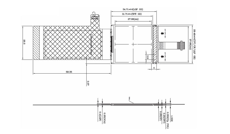 HSD015GPN3-90000A-MX is a 1.54 inch diagonal a-Si TFT-LCD display screen product, with an incorporated WLED lighting system, without backlight driver, without touch screen. Based on datasheet with version of Pre Rev1.0 which was released out on 8 8 2023, HSD015GPN3-90000A-MX supports display 200×200 with aspect ratio of 1:1 (W:H), whose pixels are arranged in Rectangle. As for mechanical detail, it features active area of 27.66(W)×27.66(H) mm, outline size of 29.46(W)×34.71(H)×1.6(D) mm, with surface treament of Hard coating, Antireflection, net weight of TBD. As a TN, Normally White, Reflective LCM product, HSD015GPN3-90000A-MX can provides 300 cd/m² display brightness 15:1 transimissive contrast ratio, 60/60/30/30 (Typ.)(CR≥2) (L/R/U/D) viewing angle ., thus presenting a palette of Monochrome colors. This product adopted 7S1P WLED as it's backlight systerm which was placed as Front light type and have a working life time of 30K hours, external backlight driver is additionally needed. HSD015GPN3-90000A-MX utilizes 3/4-wire SPI as it's signal inputting systerm, which connected by 50 pins FPC with power supply voltage of 3.3V (Typ.). It's typical vertical frame rate (Fv) is 1Hz.
