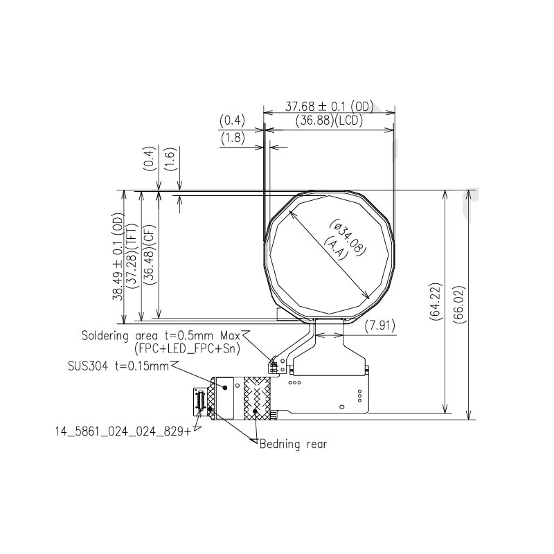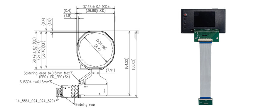 1.34 Inch 320x320 Reflective Round OLED Display.