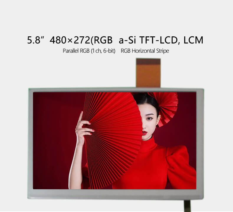 LQ058T5DR02 is a 5.8 inch diagonal a-Si TFT-LCD display screen product from Sharp, with a built-in WLED backlight. LQ058T5DR02 supports display 480×272(RGB) (WQVGA) with aspect ratio of 16:9 (W:H), whose pixels are arranged in RGB Horizontal Stripe. As for mechanical detail, it features active area of 128.88(W)×71.4(H) mm, outline size of 141.1(W)×83.7(H) mm, net weight of 120g (Max.). LQ058T5DR02 can provides 450 cd/m² display brightness . Gray scale or the brightness of the sub-pixel is determined with a 6-bit gray scale signal for each dot, thus presenting a palette of 262K colors. This product adopted WLED as it's backlight systerm which was placed as Edge light type. LQ058T5DR02 utilizes Parallel RGB (1 ch, 6-bit) as it's signal inputting systerm.