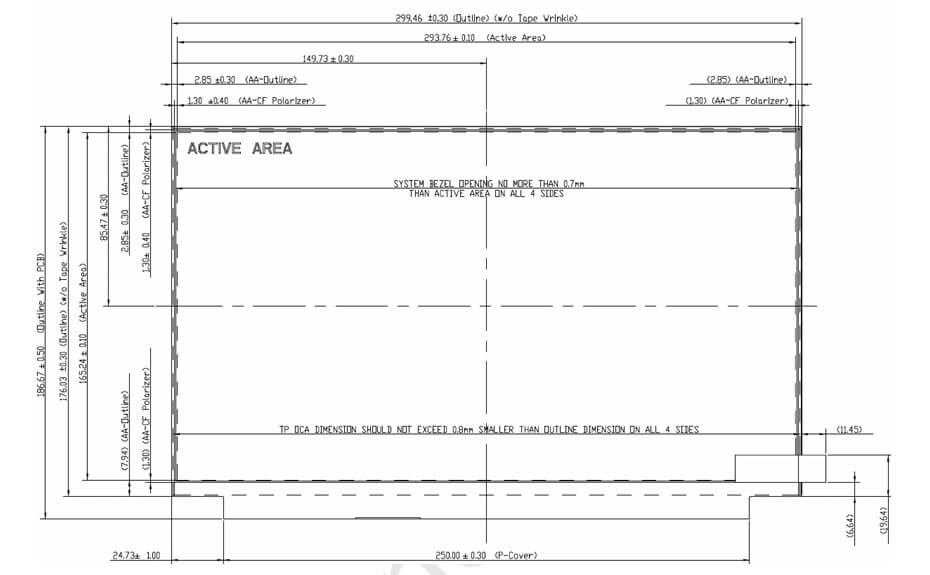 N133DCE-GP1 is a 13.3 inch diagonal a-Si TFT-LCD display screen product from Innolux, with a built-in WLED backlight, With LED Driver, without touch screen. N133DCE-GP1 supports display 3840(RGB)×2160 (UHD) with aspect ratio of 16:9 (W:H), whose pixels are arranged in RGB Vertical Stripe, according to calculation of Panelook it's pixel density is 332 PPI. As for mechanical detail, it features active area of 293.76(W)×165.24(H) mm, outline size of 299.46(W)×186.67(H)×2(D) mm, with surface treament of Glare (Haze 0%), Hard coating (3H), net weight of 151/160g (Typ./Max.), shape stype of Slim (PCBA Flat, T≤3.2mm). As a AAS, Normally Black, Transmissive LCM product, N133DCE-GP1 can provides 340 cd/m² display brightness 1500:1 transimissive contrast ratio, 89/89/89/89 (Typ.)(CR≥10) (L/R/U/D) viewing angle, best view direction on Symmetry , and response time of 15/14 (Typ.)(Tr/Td) ms. Gray scale or the brightness of the sub-pixel is determined with a 8-bit gray scale signal for each dot, thus presenting a palette of 16.7M colors, also with performance of color gamut 100% (sRGB). This product adopted WLED as it's backlight systerm which was placed as Edge light type and have a working life time of 15K hours, With LED Driver. N133DCE-GP1 utilizes eDP (4 Lanes) as it's signal inputting systerm, which connected by 40 pins Connector with power supply voltage of 3.3V (Typ.). It's typical vertical frame rate (Fv) is 60Hz.
