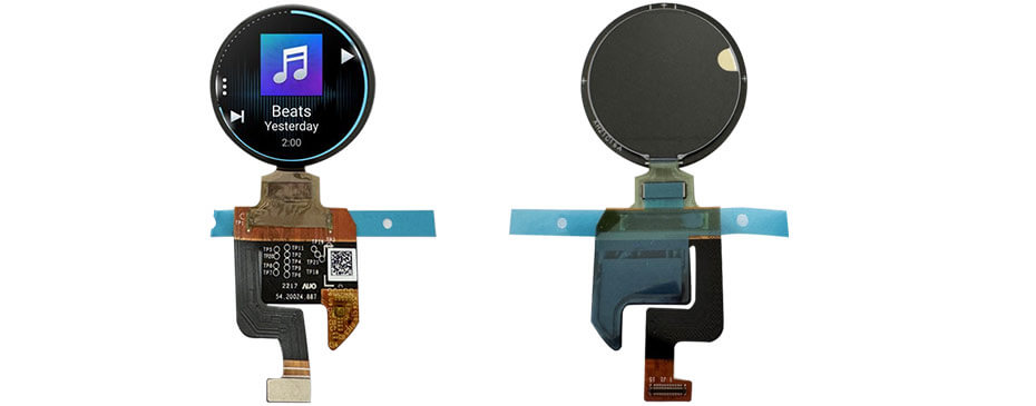 U128BLA03.0 is a 1.28 inch diagonal AM-OLED display screen product from AUO, it self emiting, touchscreen In-Cell Touch. U128BLA03.0 supports display 416(RGB)×416 with aspect ratio of 1:1 (W:H), whose pixels are arranged in RGB Vertical Stripe, according to calculation of Panelook it's pixel density is 325 PPI. As for mechanical detail, it features active area of 32.45(W)×32.45(H) mm, outline size of 38.2(W)×79.4(H)×2.1(D) mm. U128BLA03.0 can provides 350 cd/m² display brightness 10000:1 transimissive contrast ratio, 80/80/80/80 (Min.)(CR≥10) (L/R/U/D) viewing angle, best view direction on Symmetry . Gray scale or the brightness of the sub-pixel is determined with a 8-bit gray scale signal for each dot, thus presenting a palette of 16.7M colors, also with performance of color gamut 100% (DCI-P3). This product emiting itself . U128BLA03.0 utilizes MIPI (2 data lanes) as it's signal inputting systerm, which connected by 30 pins Connector with power supply voltage of 1.8/3.3V (Typ.)(VDDIO/VCI). It's typical vertical frame rate (Fv) is 45Hz.